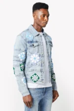 Make a bold statement with the GUAPI Aqua Blue Flowers Denim Jacket, designed to blend classic denim style with vibrant floral accents. Ideal for the modern man who appreciates a fresh, stylish look, this jacket is perfect for any casual or semi-casual occasion.